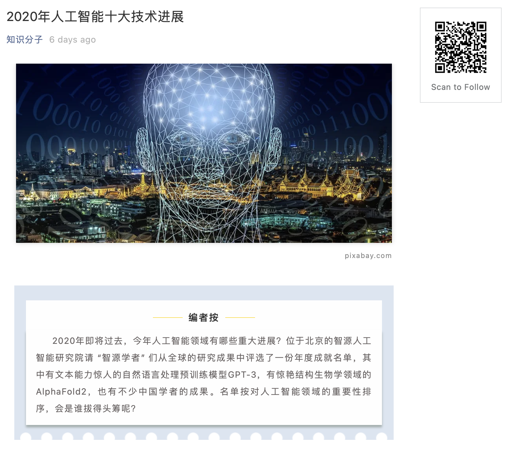 The Beijing Academy of Artificial Intelligence asked its scholars to come up with a joint top 10 list (links to the original Mandarin) of the most important AI advances in 2020. Instead of a Google doc, …(Jeffery Ding has…) just translated what they came up with below”